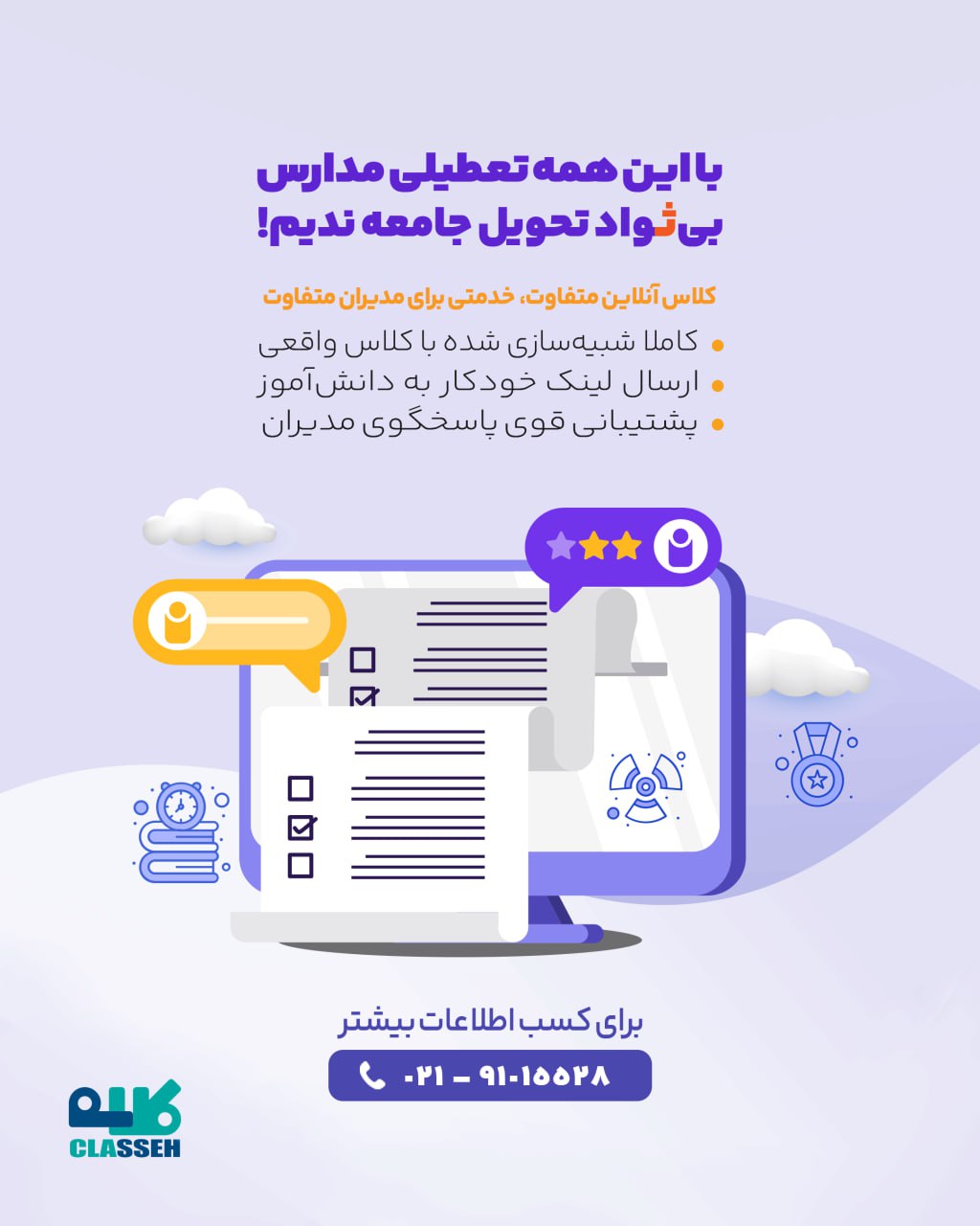 در مقابل، مدرسهای که با استفاده از خدمات شرکت کلاسه و مجموعه دانشبنیان فناور مسیر هوشمندسازی مدرسه را جدی گرفته، در هر شرایطی پایدار خواهد بود و خانوادهها با خیال راحت آن را انتخاب میکنند.